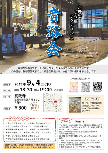 お寺の本堂をお借りして、気軽にごろ寝でクリスタルボウルの音を楽しんでいただくイベントです。