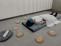 マットの上にゴロリと寝転び、全身でクリスタルボウルの音を浴びていただくリラクゼーションです。
